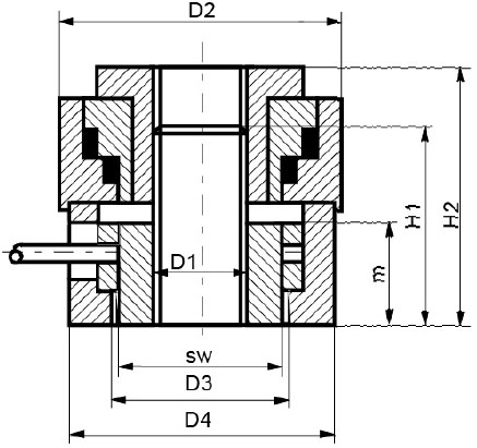 | 规格型号 | 螺纹规格D1 | 拉伸力(KN) | 六角螺母DIN934 | D2 | 行程 | 支承座 | H1 | H2 | ||||