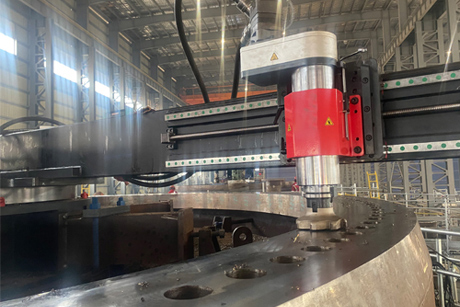 专门为大型法兰在线加工设计,例如:船舶推进器法兰、风电塔筒法兰、吊机或其它回转支承基座法兰等,采用铣削的加工方式,最大夹持刀盘直径可达到250mm,可快速,高精度实现法兰安装面的加工与修复。